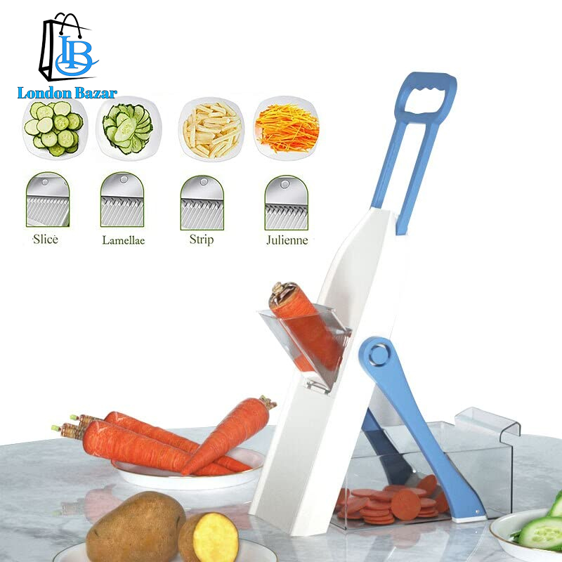 কন্টেইনার (Container): কাটা সবজিগুলি সরাসরি ধরার জন্য একটি নিচের কন্টেইনার থাকে (যেমন ছবিতে কাটা গাজর রাখা আছে), যা রান্নাঘরের কাজের জায়গা পরিষ্কার রাখতে সাহায্য করে।